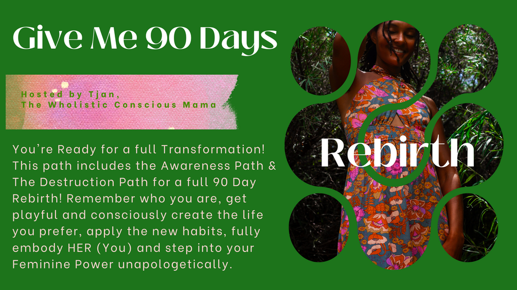 You're Ready for a full Transformation! This path includes the Awareness Path & The Destruction Path for a full 90 Day Rebirth! Remember who you are, get playful and consciously create the life you prefer, apply the new habits, fully embody HER (You) and step into your Feminine Power unapologetically.